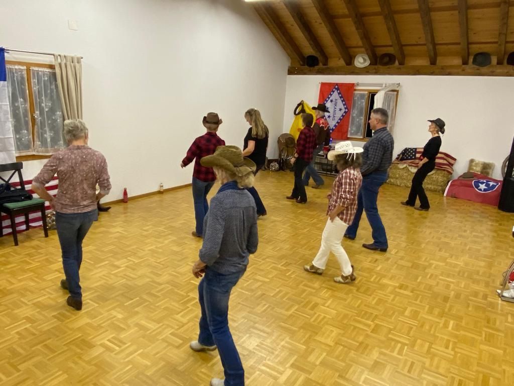 Wir tanzen alles aus unserem Repertoire, manchmal zur Originalmusik und manchmal zu wunderschönen Christmas Country Songs!