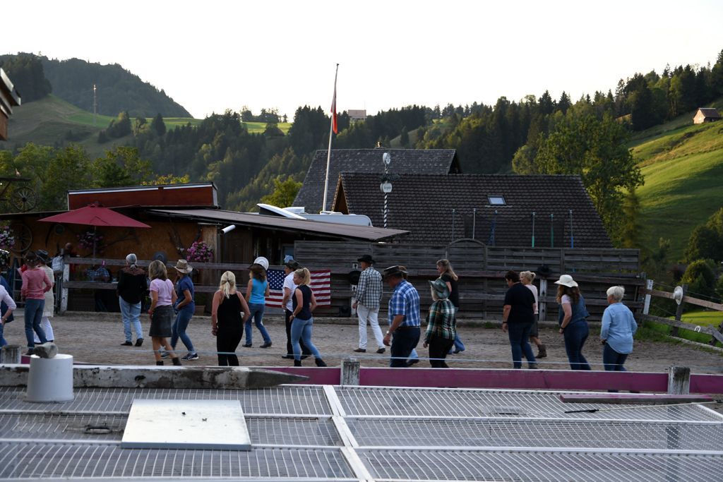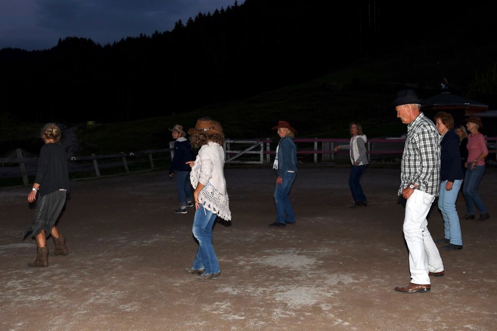 Line-Dance bis spät abends auf dem Sandboden vom Reitplatz im Haflinger-Hof in 8847 Egg, SZ.